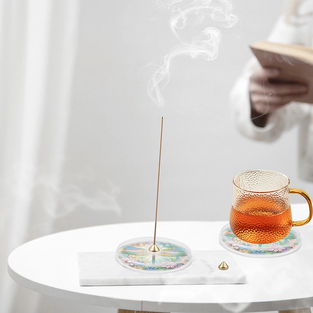 |  2Pcs Acrylic Special Shaped Beautiful Pattern 5D DIY Diamond Art Incense Holder Diamond Painting Aroma Stand for Yoga Meditation