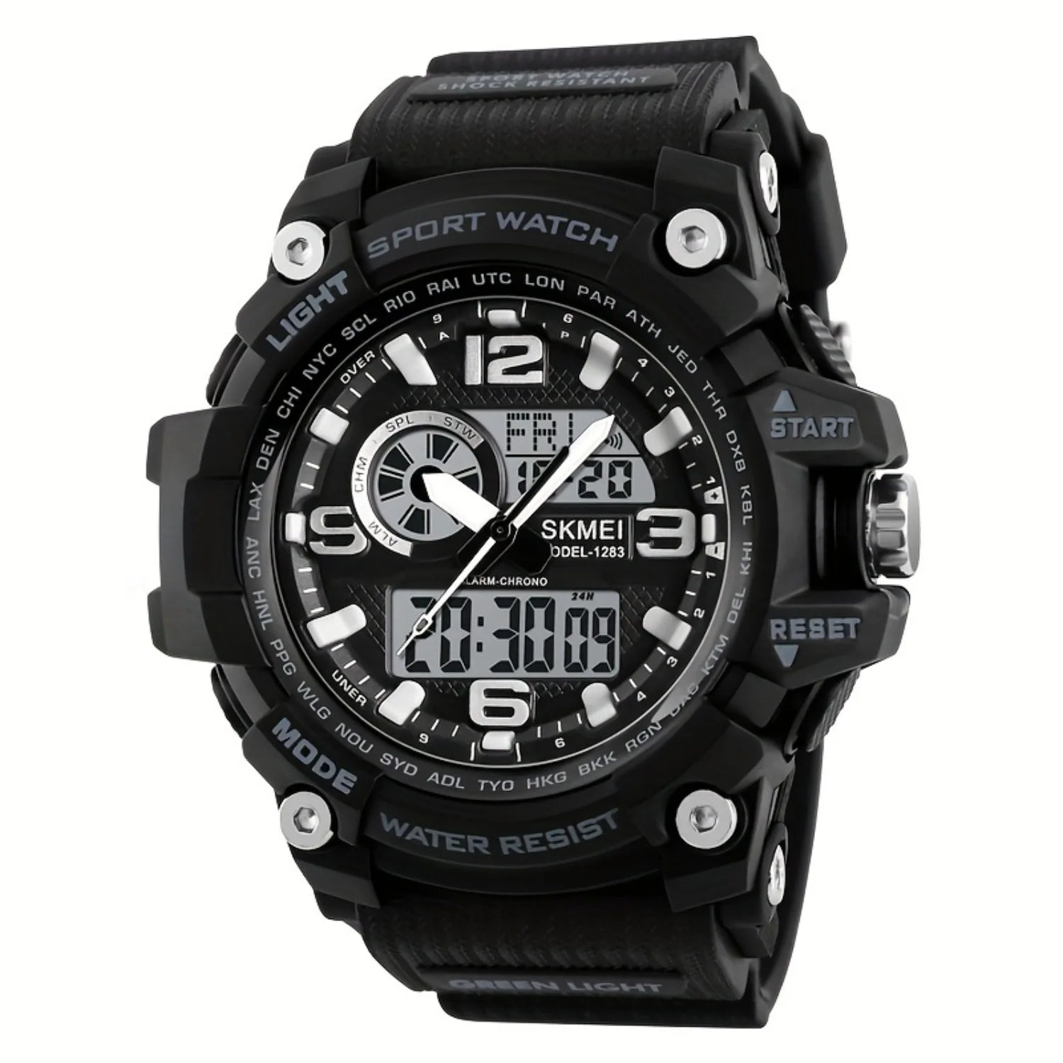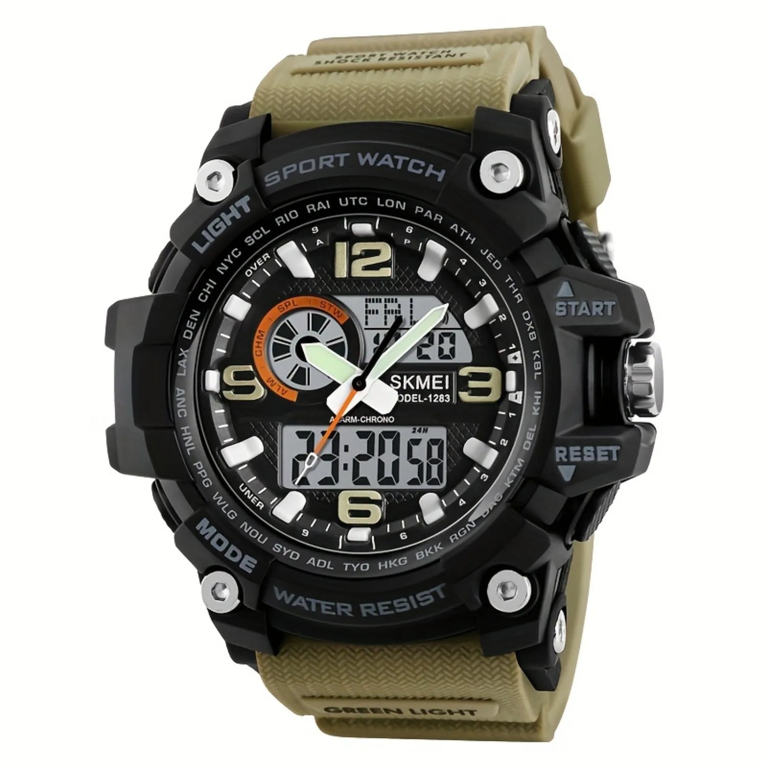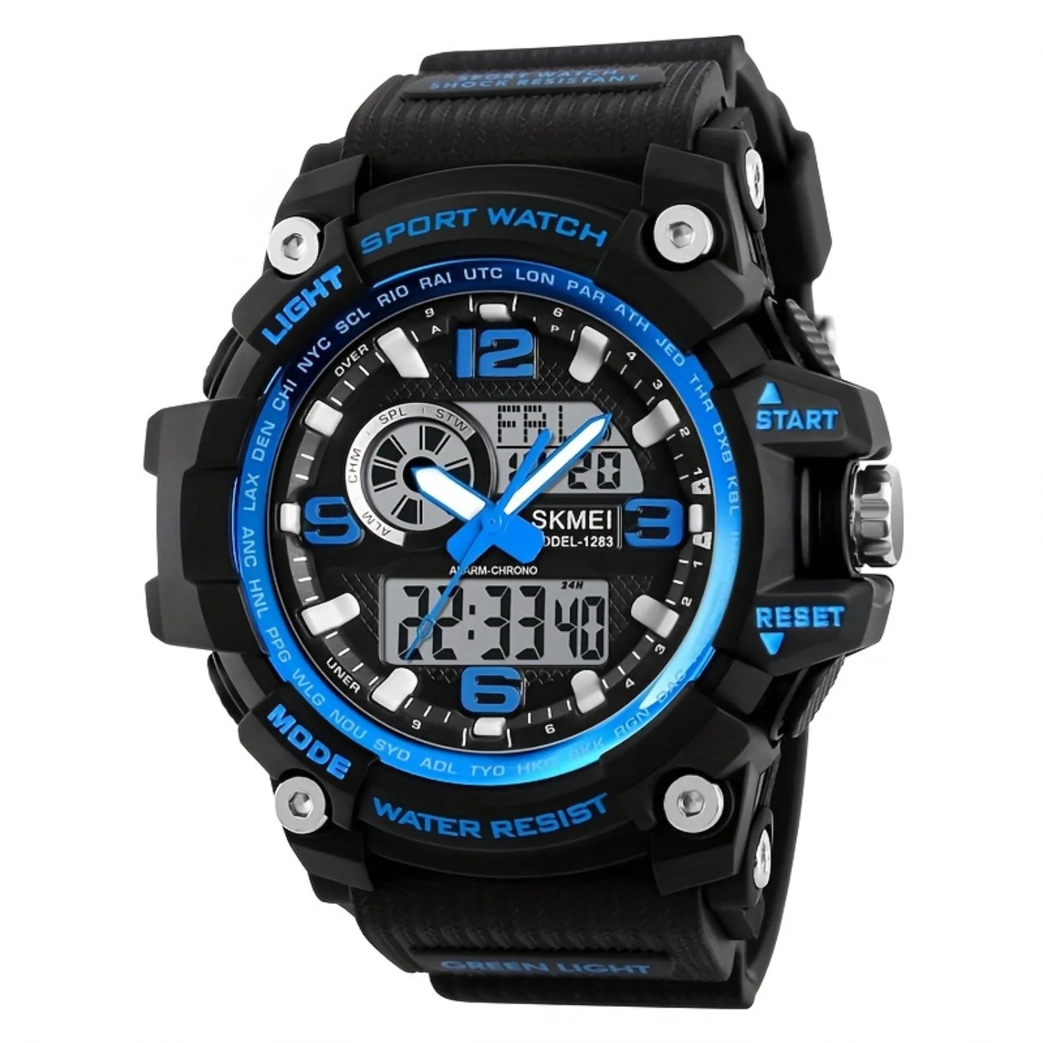 Waterproof Dual Time Electronic Watch, Outdoor Stopwatch with LED, Multifunctional Sports Wristwatch